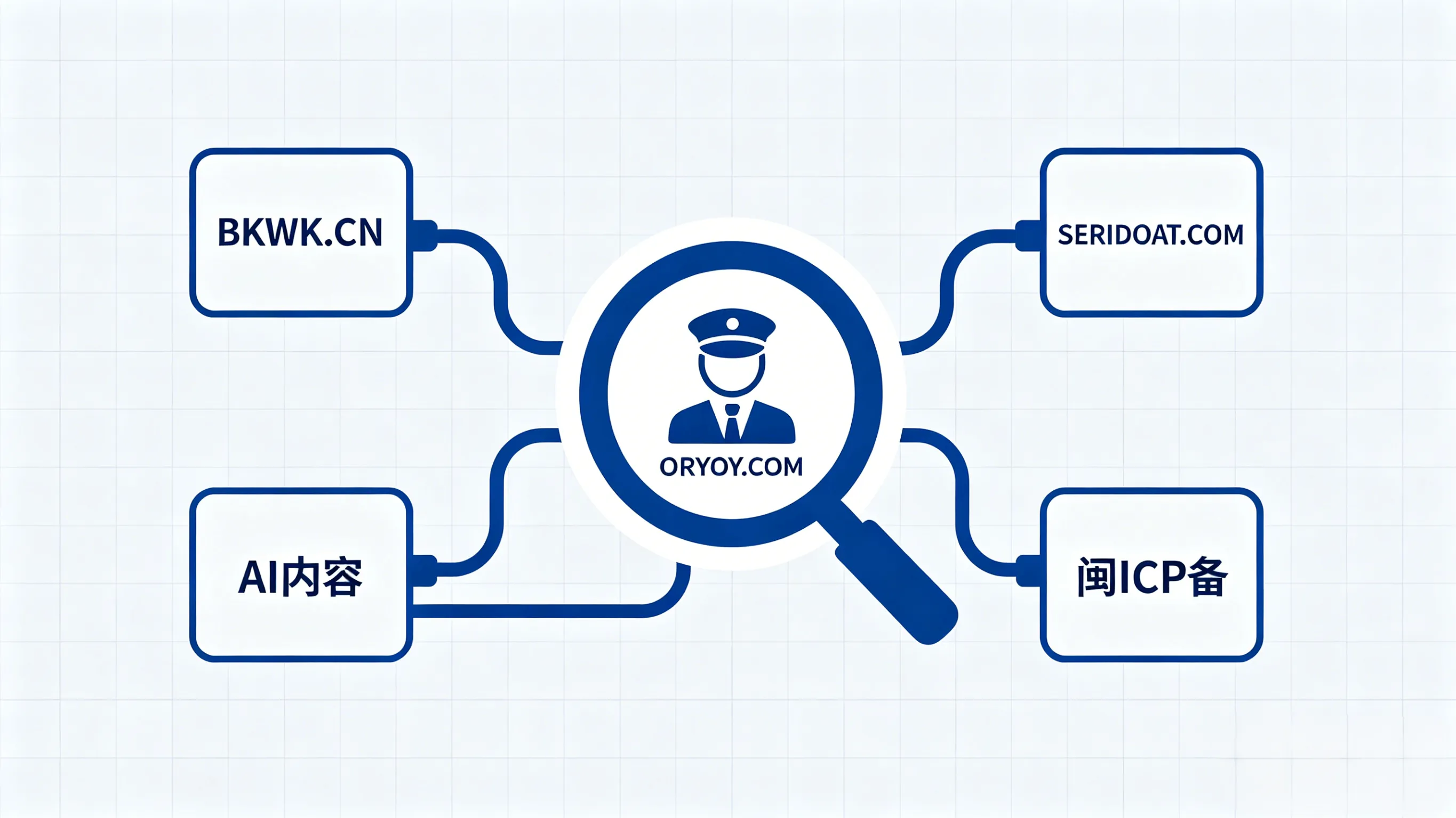 1. 查备案号:看到内容不对劲的,到底部复制备案号去工信部查查。一个号下面挂了十几个跨界网站的,99% 是批量生成的农场。